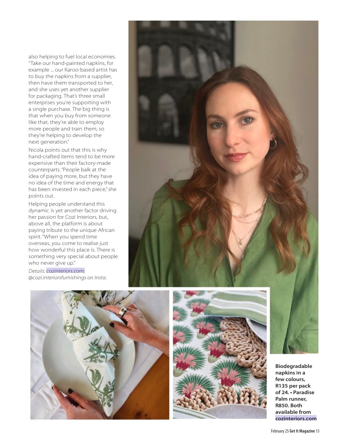 A key part of our business is our expanding online shop, showcasing stunning handmade South African products, which we ship nationally.