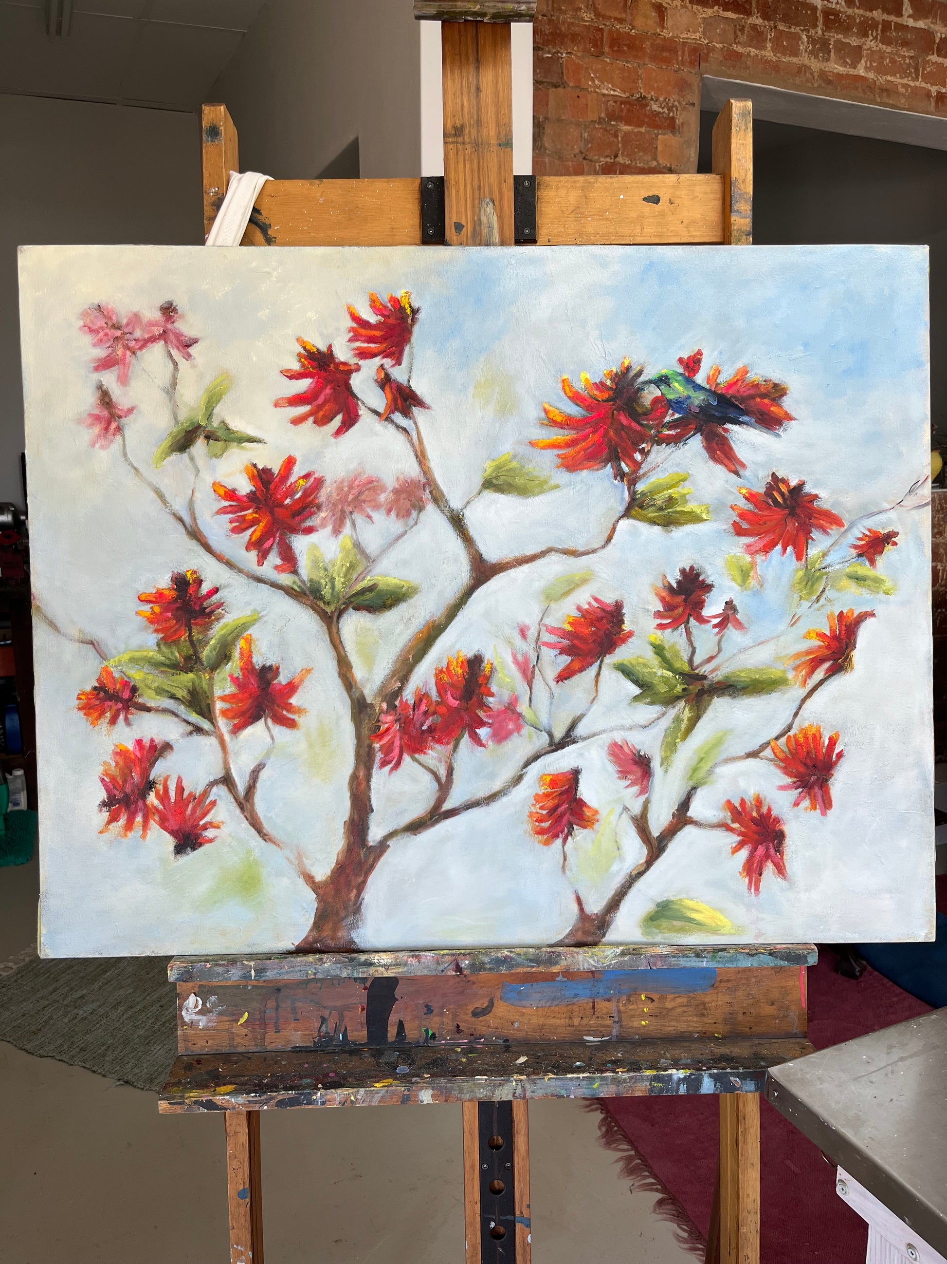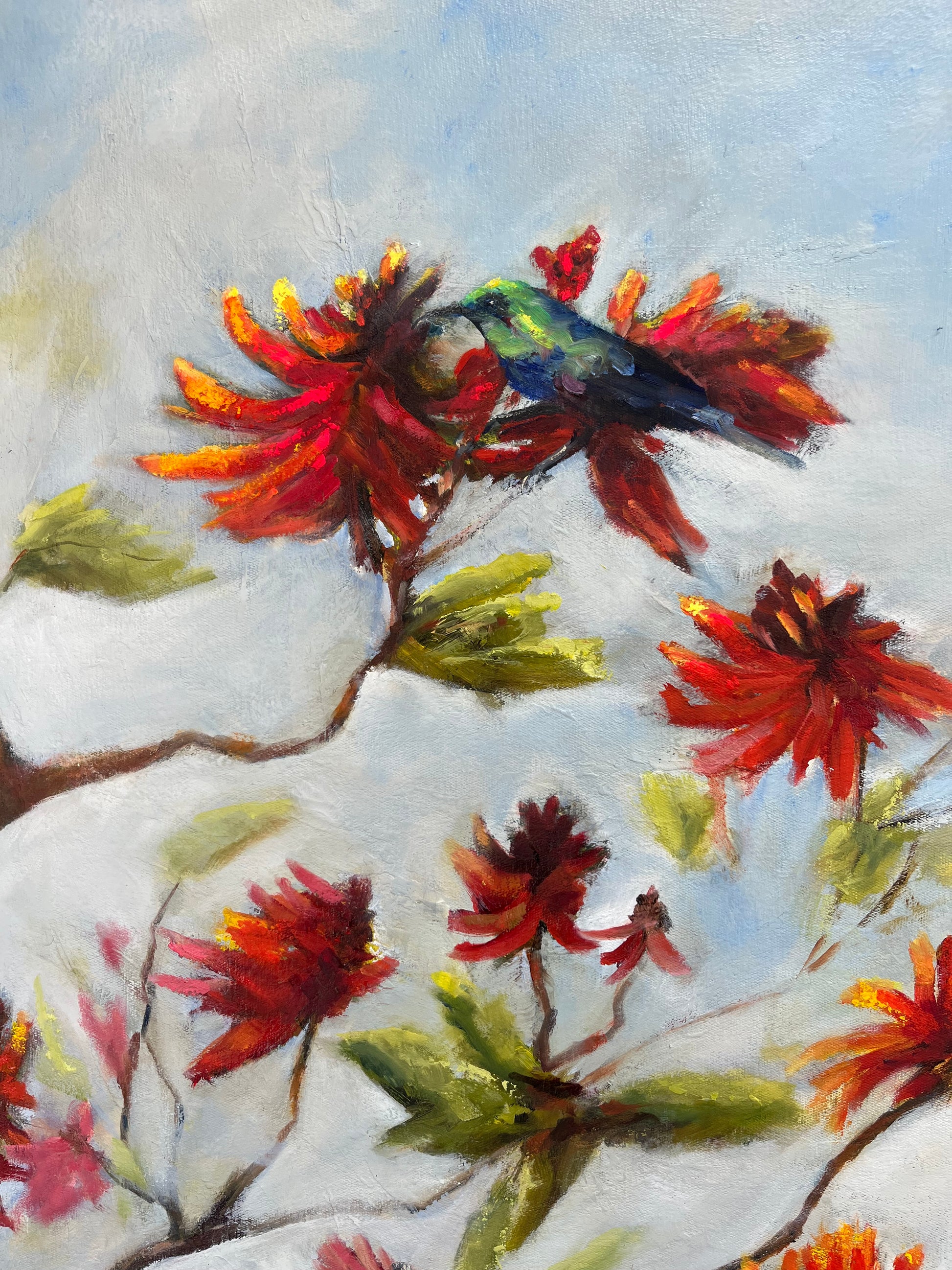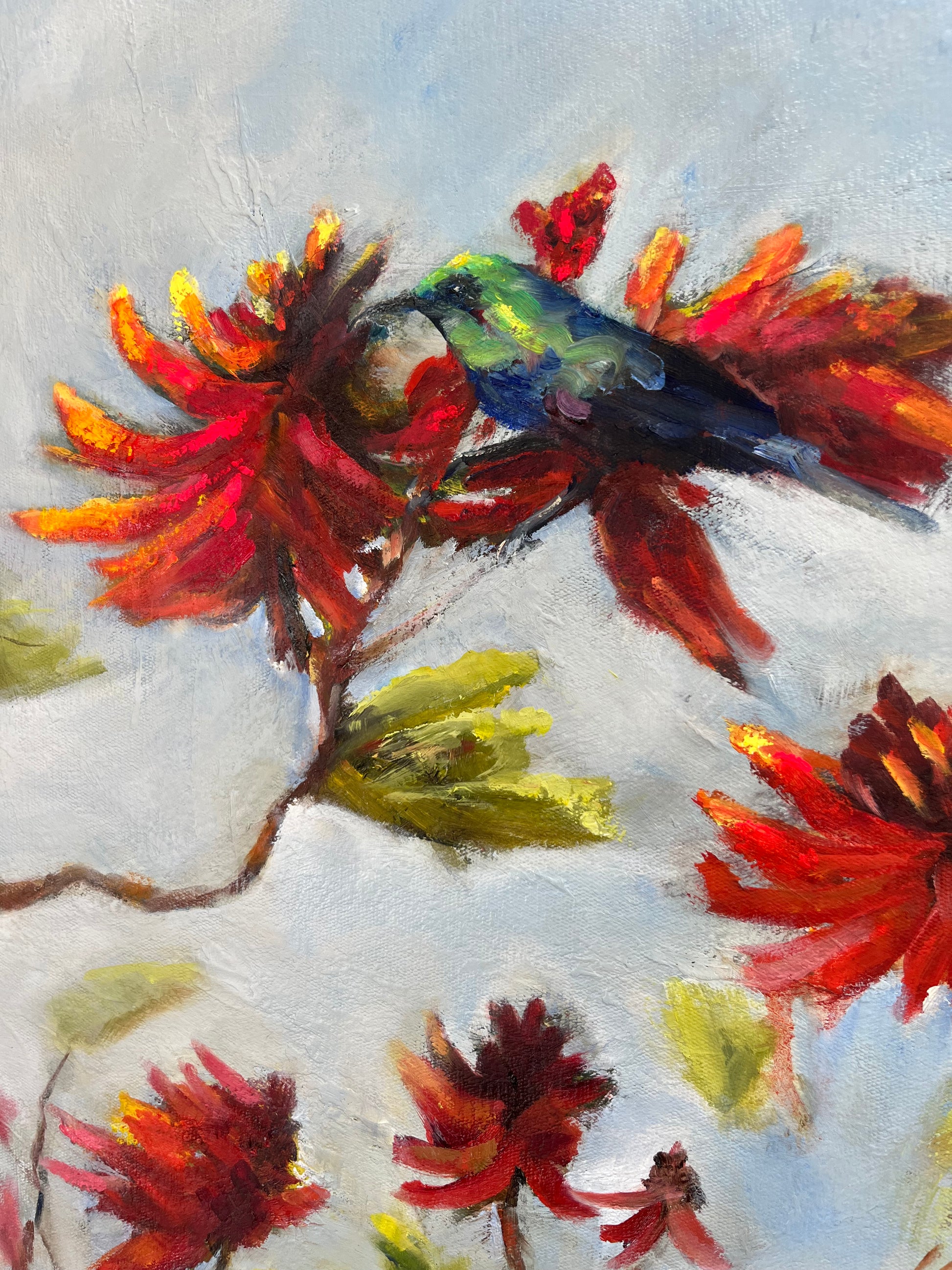 This stunning painting by Meryl captures the essence of a bright and happy African scene. Created with rich oil on canvas, this piece radiates with vibrant colors and brings a sense of joy to any space. Add a touch of culture and beauty to your home or office with this expertly crafted work of art.